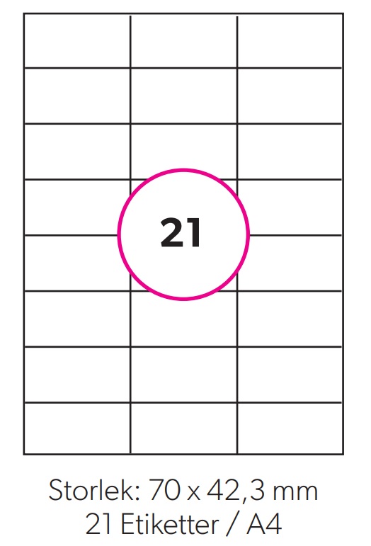 Laser & Kopieringsetiketter 70x42,3mm / 21 etiketter per ark, Label Media etiketter i bra kvalitet,
