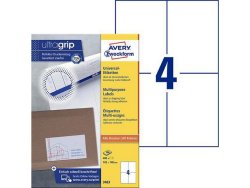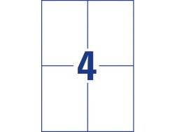 Har du flera olika typer av skrivare på kontoret? Inga problem, du behöver bara köpa en typ av etiketter ? med Averys vita 3483 permanenthäftande universaletiketter för inomhusbruk med 4 etiketter/ark och 400 etiketter/förpackning får du etiketter som kan användas i sv/v- och färglaserskrivare, bläckstråleskrivare och kopieringsmaskiner. Du behöver alltså inte vara orolig för om du har lagt etiketter för bläckstråleskrivaren i laserskrivaren. Etiketterna är lämpliga för en rad olika användningsområden där du behöver använda permanent märkning, t.ex. adressetiketter på paket, märkning av stora föremål eller organisering av lådor. De fäster säkert, tillförlitligt och permanent på alla slags släta ytor. Papperskvaliteten är optimerad så att du får snygga och knivskarpa utskrifter oavsett vilken typ av skrivare du använder. Etiketter med förstärkt grepp, ultragrip. Ett unikt 3D-mönster på arken gör att skrivaren kan få perfekt grepp om dem. Tack vare dessa greppzoner kan skrivarvalsarna greppa och mata fram och styra etikettarken ännu bättre. Precisa utskrifter utan pappersstopp garanteras! Med Averys universaletiketter sparar du inte bara tid och besvär, de hjälper dig också att bevara miljön då de är FSC®-certifierade och därmed bara producerade av papper från hållbart skogsbruk samt kan återvinnas tillsammans med allmänt pappersavfall. På www.avery.eu hittar du massor av mallar som du kan använda för att enkelt och GRATIS designa och skriva ut dina Avery-etiketter. - Mått: 105x148mm