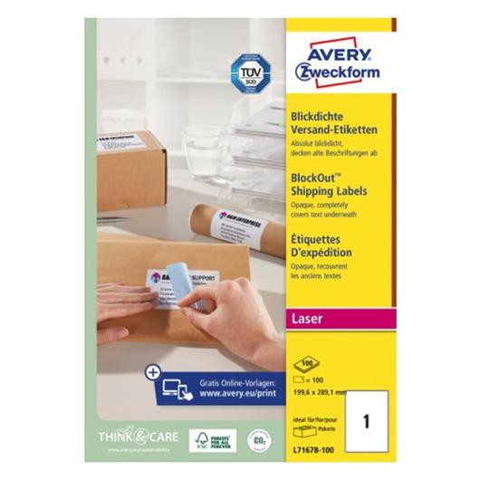 Lämpliga som returetiketter när du behöver returnera ett köp du gjort i en nätbutik eller skicka ett paket Ge dina paket och brev ett professionellt utseende genom med dessa helvita, 100 % täckande paketetiketter. Avery L7167B-100 med BlockOut? har 1 etikett/ark och 100 etiketter/förpackning. De är tillverkade i ett material som dels döljer gammal text och gamla etiketter och dels håller hela transporten. De är det idealiska och ekonomiska valet eftersom de täcker gammal text och gamla etiketter till 100 % så att du enkelt kan återanvända tidigare använt emballage och skicka dina paket med tydlig mottagarinformation. Det gör etiketterna särskilt lämpliga som returetiketter när du behöver returnera ett köp du gjort i en nätbutik eller skicka ett paket. Etikettstorleken är extra lämplig för B4/C4-kuvert samt för mindre paket, rör och kartonger. De är kompatibla med alla vanliga sv/v- och färglaserskrivare. Den höga papperskvaliteten ger vackra och skarpa utskrifter. Averys JamFREE?-garanti säkerställer dessutom att du inte behöver bekymra dig för om etiketterna fastnar i skrivaren och orsakar stopp. Etiketterna har en pålitlig och permanent vidhäftning. Med Averys etiketter med BlockOut? sparar du inte bara pengar genom att återanvända emballage, de hjälper dig också att bevara miljön då de är FSC®-certifierade och därmed bara producerade av papper från hållbart skogsbruk samt kan återvinnas tillsammans med allmänt pappersavfall. Du kan enkelt - och helt gratis - designa och skriva ut dina Avery-produkter med vår mjukvara Avery Design & Print, som innehåller mallar, grafik och designmöjligheter. Läs mer om mjukvaran här: www.avery.se/programvara - Antal: 100/fp