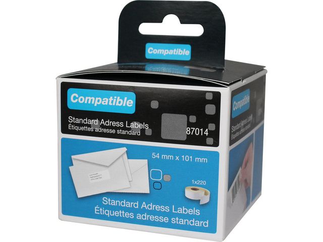 Perfekt för att adressera små kuvert och förpackningar - Kompatibla med: DYMO® LabelWriter 320, 330, 330 Turbo, 400, 400 Duo, 400 Turbo, 400 Twin Turbo - Universella LabelWriter-etiketter - För brev, kuvert och pärmar - Icke-permanent etikett - Lämnar inga limrester - Med direkt termisk utskriftsteknik - En rulle med 220 etiketter - Etikettstorlek: 101 x 54 mm (L x B) - Färg: Vit - Innehåller inte PVC