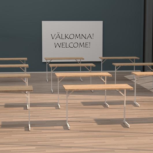 Produkten uppfyller Möbelfaktas kravspecifikation gällande kvalitet, miljö och socialt ansvar. Litet smidigt och smart fällbord förkonferensrum, utbildningssalar, mässor, möten, fester och vad skolor. Skiva i stryktålig och lättskött laminat. Plocka fram, ha uppe eller plocka ner igen. Bygg som du vill genom att sätta ihop borden och låt bara fantasin begränsa vilka möjligheter som finns. Fördelen med T-ben som detta bordet har är att det är lätt att ha hela stolen innanför eller om man vill ha lite mer avstånd så ta bara ett stolsben utan benet så får man mer utrymme men ända har det lilla bordet.