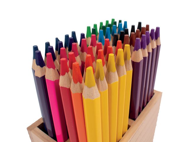 Njut av att måla och rita i hemmet eller skolan med dessa färgpennor i jumbostorlek. Dessa färgpennor finns i olika färger och är idealiska för teckningar och skisser. Pennorna är i jumbostorlek vilket gör dem lämpliga för barn och elever. Den stora sexkantiga pennkroppen ger ett bekvämt och optimalt grepp när du färglägger dina konstverk. Dessutom matchar pennkroppens färg stiftets färg för enkel hantering och identifiering. - Färgpennor - Jumbostorlek - Sexkantig pennkropp - Vässade spetsar - Pennkroppens färg matchar stiftets färg - Förpackade i en trälåda - Längd penna:175 mm - Diameter pennkropp: 10 mm - Diameter färgminan: 6 mm - Färger på pennkroppen: Olika färger - Stiftfärger: Olika färger