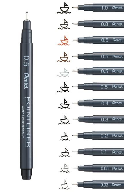 Fiberpennan Pointliner är perfekt att skriva och teckna med. Den är en favorit bland professionella tecknare och amatörer som föredrar precisa, mättade linjer.