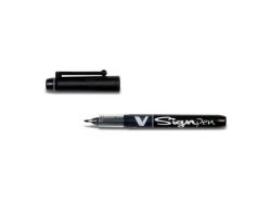 Pilot V-Sign-penna använder flytande bläck med ett bläckfönster och bläckkontrollsystem för att garantera att bläckflödet alltid är stabilt. Denna fineliner avger en mjuk linje av flytande bläck och är idealisk för att framföra text och meddelanden på etiketter eller där skriften måste synas väl. Flerfunktionsfinelinern har ett patenterat system med flertrådig matarledning för bläckleverans, som reglerar bläcktillförseln, och därmed ges ett konstant och jämnt bläckflöde för ytterligare bekvämlighet när du skriver. Pennan är försedd med en användbar fickklämma och har en enkel men ändå snygg pennkropp. - Huv - Spetsbredd: 2,0 mm - Linjebredd: 0,6 mm - Textfärg: Svart - Färg pennkropp: Svart - Vattenbaserat bläck
