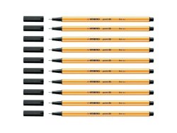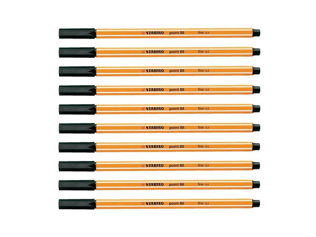 Välkända STABILO® point 88® är idealisk för att skriva, rita och skissa. Den har ett vattenbaserat bläck med starka färger som klarar sig länge utan att torka även om den inte har någon kork. STABILO® point 88® med tunn spets är en penna som utformats för lång hållbarhet och passar utmärkt för skol- och proffsbruk eftersom den metallförstärkta spetsen på 0,4mm möjliggör detaljerat arbete som att rita diagram eller skisser och tekniska ritningar. Pennans tunna metallspets passar utmärkt för användning med mallar och linjaler. Pennan har en linjebredd på 0,4 mm, en sexkantig randig design och en ventilerad säkerhetskork. Pennan har dessutom ett luktfritt vattenbaserat bläck så att den kan ligga utan kork i upp till 24 timmar utan att torka. Finelinerpennan STABILO® point 88® finns i blandade klara färger och är ett populärt val bland konstnärer och barn tack vare de tydliga pigmenterade linjerna. - Huv - Spetsbredd: 0,4 mm - Textfärg: Svart - Färg pennkropp: Orange (Huv i textfärg) - Vattenbaserat bläck