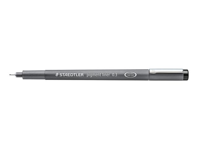 Pigment liner 0,3 mm. Lång metallspets, idealisk för användning med linjaler och mallar. Pigmentfärg, arkivbeständig (enligt ISO 14145-2), ljusfast, vattenfast. Raderbar vid användning på matt ritfilm, blöder inte vid överstrykning. Cap off - kan lämnas utan kork i minst 12 timmar utan att torka (Standard atmosfär enligt ISO 554) Pennkropp i PP ger lång livslängd.
