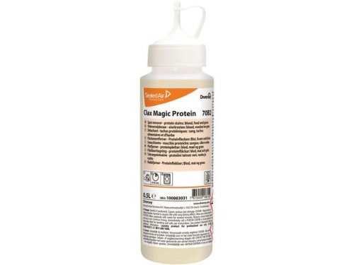 Effektivt fläckborttagningsmedel för fett- och proteinfläckar. Clax Magic Protein är ett fläckborttagningsmedel med innovativ och koncentrerad formulering för tvättgods med smuts som t.ex blod, mat & gräs. Produkten är högkoncentrerad och tar effektivt bort fettfläckar och proteinfläckar. Produkten kan användas på de flesta typer av tyg och förlänger tygets livslängd genom att ta bort behovet av att tvätta om plagget. Produkten är klar att användas direkt. - Högkoncentrerad - Volym: 500 ml