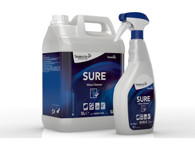 En miljövänligare lösning som ger dig rena och randfria glas. Du kan få glas och hårda ytor att glänsa utan att behöva påverka miljön. SURE Glasrengöring från Diversey använder naturligt växtmaterial som bas för en grundlig rengöring, och kombinerar professionella prestanda med hållbara åtaganden. Vätskan med den färska lukten torkar snabbt och jämnt på ytor som är fria från rester och strimmor. Det kan användas mycket effektivt på fönster, speglar och andra vattenresistenta och hårda ytor, keramik och plast. SURE-serien erbjuder professionella rengöringsprodukter som är utformade för att uppfylla kraven på effektivitet och tar även hänsyn till miljön och människors hälsa. Alla produkter är vegetabiliska och tillverkade av förnybara energikällor som är 100 % nedbrytbara och utformade för effektivitet. - Miljövänligare och effektivt glasrengöringsmedel - Tillverkad av 100 % komposterbart material - Växtbaserat rengöringsmedel - Ytorna blir gnistrande rena - Sammansättning utan strimmor - Mångsidig användning på många ytor - Certifiering: EU Ecolabel - Etikettfärg: Blå - Volym: 750 ml