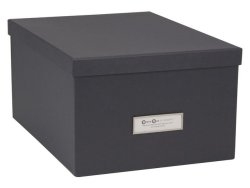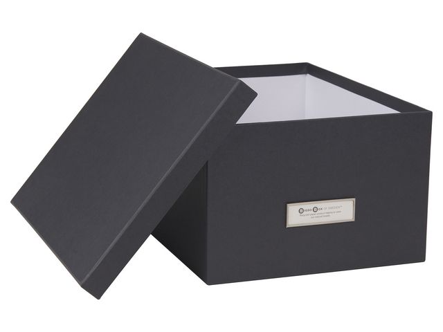 Skapa ordning och reda på skrivbordet med denna förvaringsbox i snygg design. Förvaringsbox med lock och etiketthållare som hjälper dig att hålla ordning. Elegant design som passar i de flesta hem och kontor. - Tillverkade av 100 % återvunnet returpapper - FSC-certifierat - Mått (LxBxH): 29,5x22,5x15 cm - Volym: 9,95 Liter