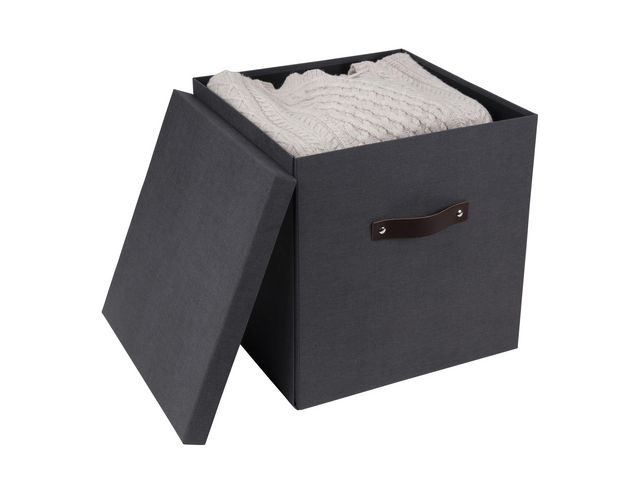 Förvaringsbox för större förvaring. Elegant design med läderhandtag som passar i de flesta hem och kontor. - Enkel montering utan verktyg och skruv. - Tillverkade av 100 % återvunnet returpapper - FSC-certifierat - Mått: 31,5x31,5x31cm - Volym: 30,75 Liter