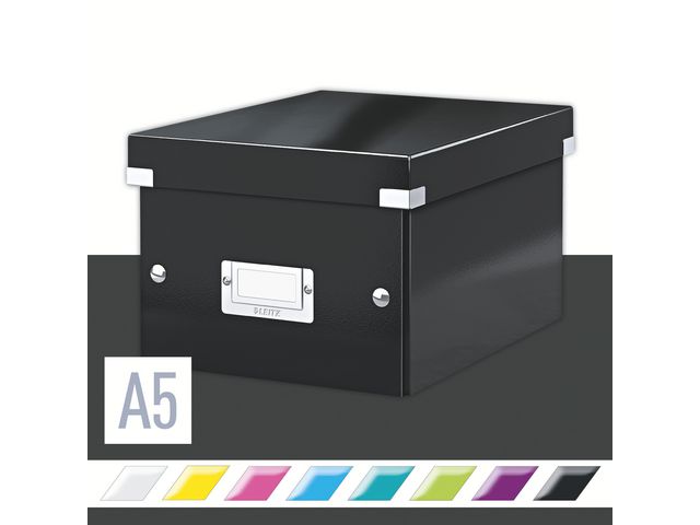 Elegant förvaringslåda för A5-dokument, bilder och annat smått och gott Snabb och enkel att montera tack vare tryckknappar eller montera ned för platsbesparande förvaring när den inte behövs Modern design och färg för att förbättra din förvaring på kontoret eller i hemmet Blank PP yta ger lådan premiumutseende, långvarig användning och enkel dammtorkning Silverfärgad etiketthållare med etikett för enkel innehållsförteckningFärg: SvartMaterial: PP laminerad kraftig kartongStorlek: 220 x 160 x 282 mmVolym: 7,4 Liter