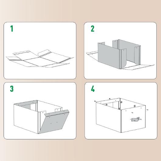 Setet innehåller två medelstora låga förvaringslådor med lock, tillverkade av 100% pre-consumer återvunnen FSC-certifierad kartong med en stilren design som passar både hem och kontor. Lådorna har en kapacitet på 8 liter och lämpar sig för A4-dokument, 14-tums bärbara datorer, hobby- och pysseltillbehör, leksaker och garderobstillbehör. Starkt material med maxvikt 4 kg gör det möjligt att stapla lådorna för platsbesparande förvaring. Levereras platt packad i plastfri förpackning och monteras enkelt utan verktyg.
