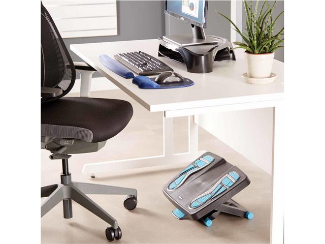Förbättra hållning och komfort med Fellowes® Energize?-fotstöd Förbättra hållning och komfort med Fellowes® Energize?-fotstöd Fellowes® Energize?-fotstöd är idealiskt när du arbetar många timmar sittande vid skrivbordet och ger stimulans för trötta fötter och lindrar stress. Plattformen utan fast vinkel och de innovativa massagedynorna av gummi uppmuntrar till korrekt placering av fötterna och du drar maximal nytta av den gungande rörelsen som uppstår när du sitter, vilket förbättrar hållningen och blodflödet. Tack vare sin kompakta design är den enkel att förvara när den inte används. Höjden kan justeras till 100 mm, 135 mm eller 165 mm och vinklas upp till 25°. - Idealisk för långa arbetspass vid skrivbordet eller daglig användning - Stimulerar trötta fötter och lindrar stress - Höjden kan justeras till 100 mm, 135 mm eller 165 mm - Fotmassagedynor av gummi främjar en bättre hållning - Kan vinklas i upp till 25° - Plattform utan fast vinkel ger en avslappnande gungande rörelse - Kompakt design för enkel förvaring - Förbättrar cirkulationen och ger avslappning för trötta fötter