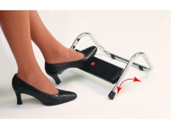 Ett flexibelt och enkelt fotstöd med förkromad ram med halkfria gummimattor. Med ett flexibelt fotstöd uppnås en bättre vinkel på fötter, knän och ben när man sitter. Detta i kombination med växlande stående och sittande arbete förbättrar blodcirkulationen och minskar en statisk hållning. Plattan kan vinklas till önskat läge och höjden kan ställas in i fyra olika nivåer. - Kromad ram - Halkfria gummidoppar och förstärkt plastplatta - Fotplattan följer fotläget - Lätt att justera till fyra höjder - Lätt att flytta med fötterna - Kan justeras i 4 höjder: 6, 9, 12 och 15 cm - Mått: H6 / 9/12/15 x B31 cm