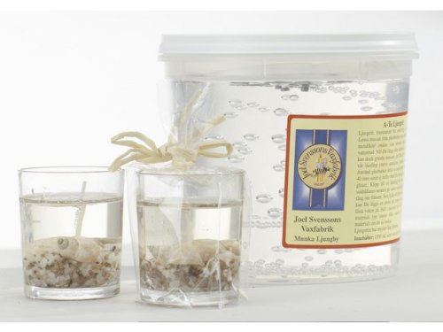 Värmeljusgelén från Joel Svenssons Vaxfabrik är en klar gelésammansättning med lång brinntid som kan användas för att skapa dekorativa ljus med enkla tillbehör. Vid särskilda helgdagar eller födelsedagar är det perfekt att ge bort gelbaserade ljus tillverkade av värmeljusgelé från Joel Svenssons Vaxfabrik. Den här stora behållaren med gel levereras med en 1,5 m lång veke som kan klippas till önskad längd. När ljusen förbereds är det möjligt att lägga till färgglada och intressanta föremål och pigment i gelén för att skapa ett unikt ljus. - Kan användas för att skapa geléljus - 1,5 m veke ingår - Tillverkas i glasbehållare med en diameter på 50 mm - Volym: 1,35 l