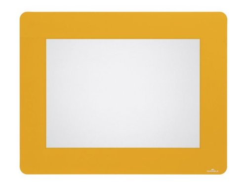 Självhäftande, borttagbar golvficka eller ram för A4 dokument för tillfällig information. Passar utmärkt att använda i t ex affärer, gym, hotell, restauranger för att informera. A4 arket placeras under det transparenta fönstret och den självhäftande ramen håller fickan på plats. Fäster på rena och torra betonggolv. - Halkskyddsgrad R9 i enlighet med DIN 51130. - Yttermått: 401 x 0,4 x 314 mm (BxHxD) Innermått: 297 x 210 mm (BxH) - Färg: Gul - Antal: 10
