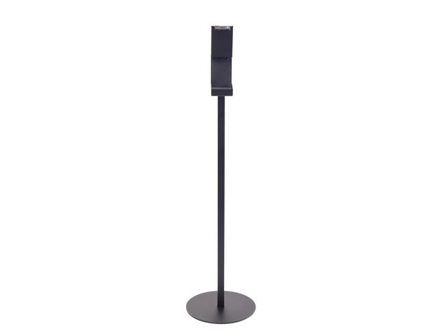 Ett stilrent och praktiskt golvställ för handdesinfektion. Går att komplettera med droppbricka, infoskylt och kodlås.