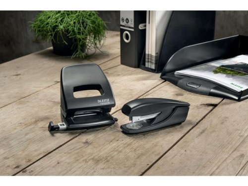 Iögonfallande, premium häftapparat tillverkad av återvunnen plast (post-consumer) för daglig användning. 100% återvinningsbart eftersom den kan demonteras helt i olika materialtyper. Patenterad Direct Impact Technology och Leitz Power Performance-häftklamrar P3 (24/6, 26/6) garanterar perfekt häftning varje gång. Denna robusta häftapparat kompletterar perfekt andra produkter från Leitz Recycle-serien och är gjord för att hålla. Moderna kontorsprodukter som ser bra ut hemma och på kontoret. Med det nya miljövänliga återvinningsprogrammet från Leitz kan du både förbättra din kontorsmiljö - och miljön på vår planet.