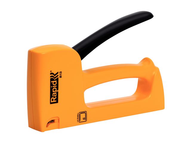 Häftpistolen Rapid® R13E är ett praktiskt verktyg för användning i hemmet, på arbetet och till gör-det-själv-projekt. Häftpistolen Rapid® R13E är ett lätt verktyg som utformats för daglig användning. Häftpistolen är idealisk för människor som utför underhåll, reparation i hemmet och även heminredningsuppgifter. Du kan använda häftpistolen för att klä om möbler, åtgärda väggpaneler och mer därtill. Häftpistolen Rapid® R13E har ett smidigt påfyllningssystem och är ett mångsidigt tillskott till verktygslådan eller verkstaden. - Lätt och högpresterande häftpistol - Smidigt påfyllningssystem - Kompatibel med nr. 13 fintrådig, 4?10 mm - Material: Plast och stål - Garanti: 3 år - Mått: 149 x 281 x 27 mm - Färg: Gul