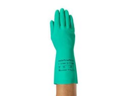 Handske ANSELL Solvex är det idealiska valet för säker hantering i många olika arbetsmiljöer där det förekommer skarpa kemikalier. Handske ANSELL Solvex velouriserade bomullsfoder kombinerat med nitrilytans flexibilitet ger en utmärkt komfort. Omvänd lozenge-finish förbättrar greppet ytterligare. Sandpatch-finishen ger handsken en slät yta som minskar indirekta kostnader tack vare färre kassationer av ömtåliga detaljer. Fullt återanvändbar med oöverträffat nötningsmotstånd. Överlag är detta en mångsidig flockad handske med 0,38 mm tjocklek för en lång rad olika tillämpningar. Passar för användning för bl a jordbruk och vinodling, bilindustrin, bygg och anläggning, kemiindustrin, glasindustrin, metallindustrin. - CE-certifierad - Livsmedelsgodkänd - Godkänd enligt: EN 374-5:2016, EN388: 4101, EN 374-1: 2016, EN 420:2003 + A1:2009:Kategori III - Klassificering: Kategori III - Material: Nitril - Material ytskikt: Nitril - Typ av ytskikt: Helbelagd - AQL 0,65 - Tjocklek: 0,38 mm - Längd: 33 cm - Färg: Grön - Storlek: S7