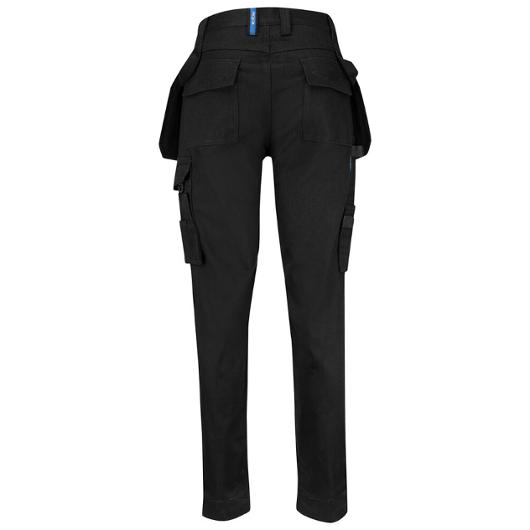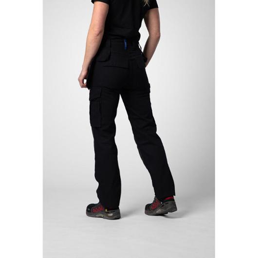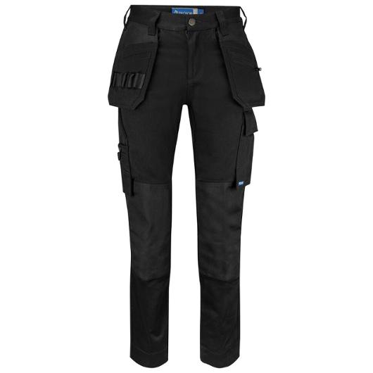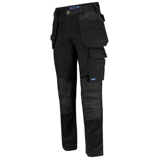 En lättare hantverksbyxa i bomull med undanstoppningsbara hängfickor, den ena med dragkedja. Bakfickor med lock och kardborrestängning. Benficka med extra fack och lock med kardborrestängning. Tumstocksficka med knivhållare. Förstärkning i hängfickor, tumstocksfickan och på knäskyddsfickor. Förböjda knän med knäskyddsfickor som går att reglera i två höjder, öppning inifrån. Kan förlängas med 5 cm genom ett utvik i benslutet. Reflexdetalj/piping bak på vaden.