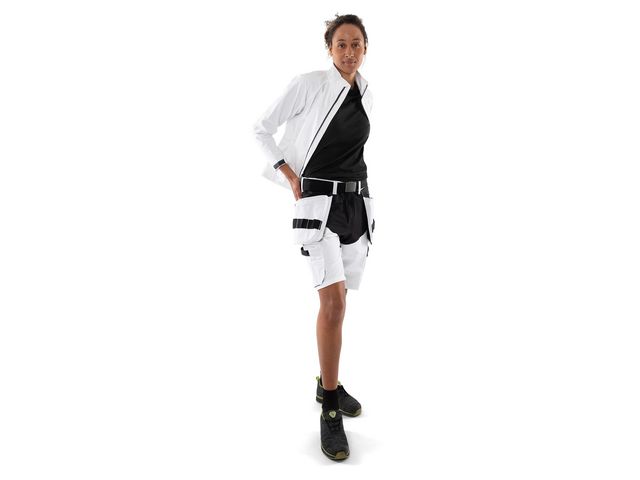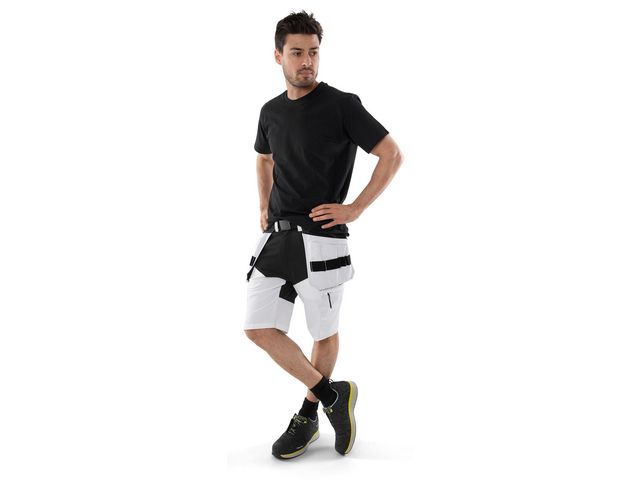 Målarshorts i 4-vägsstretch som erbjuder lättviktskomfort och rörelsefrihet, perfekt för krävande arbetsdagar. Dessa shorts är designade specifikt för målare, med robusta fickor och funktioner anpassade för målarverktyg. Tillverkade i slitstarkt lättviktsmaterial med 4-vägsstretch och linning med infälld sidoresår för optimal passform. De har två löst hängande CORDURA®-förstärkta spikfickor med extra ficka med dragkedja, D-ring under spikfickan och helfodrade bakfickor i CORDURA®. Med en dubbel förstärkt grensöm, rymlig benficka för tumstock och målarverktyg, samt en damm- och vattenskyddad ficka för telefon är dessa shorts både praktiska och hållbara.