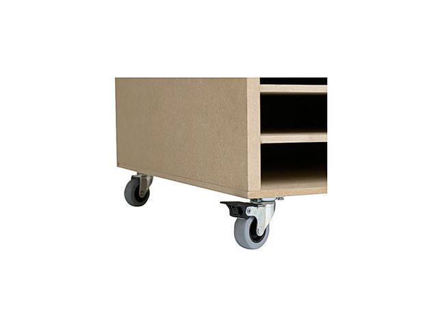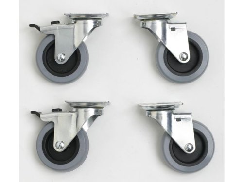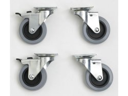 Set med 4 st gummihjul varav 2 st med broms. Kraftig konstruktion som klarar 40 kg/hjul.