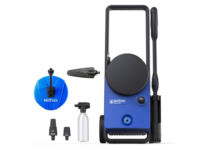 Stilren högtryckstvätt med effektreglering för justerbart vattentryck som enkelt klarar dina rengöringsbehov.