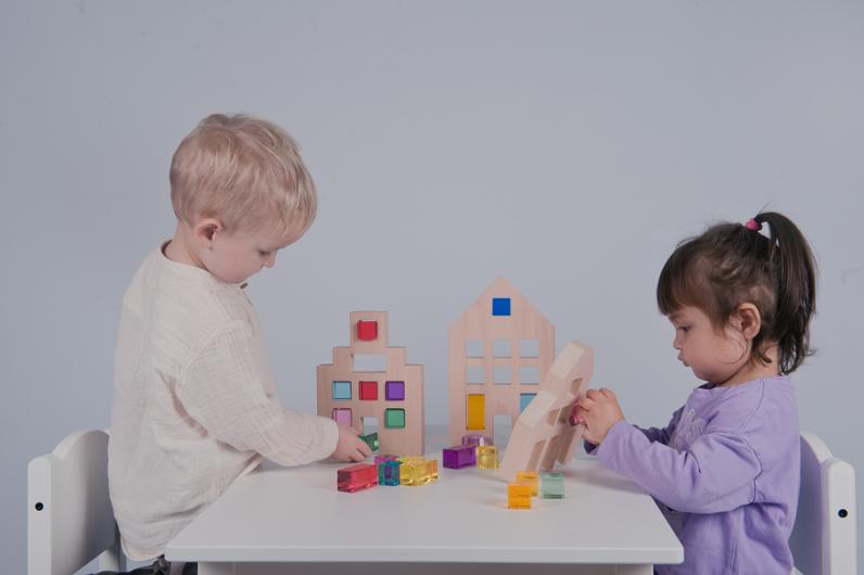 Sensoriskt hus med färgglada akrylklossar ? inspirera kreativitet och stimulera barns sinnen.