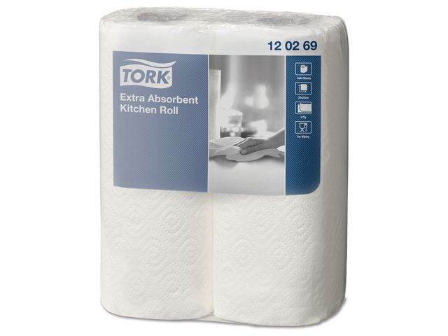 TORK Köksrulle Extra Plus av hög kvalitet för avtorkning och rengöring. Hushållspapper - ett flexibelt alternativ i många köksmiljöer. Starkt och mjukt papper med bra absorption.