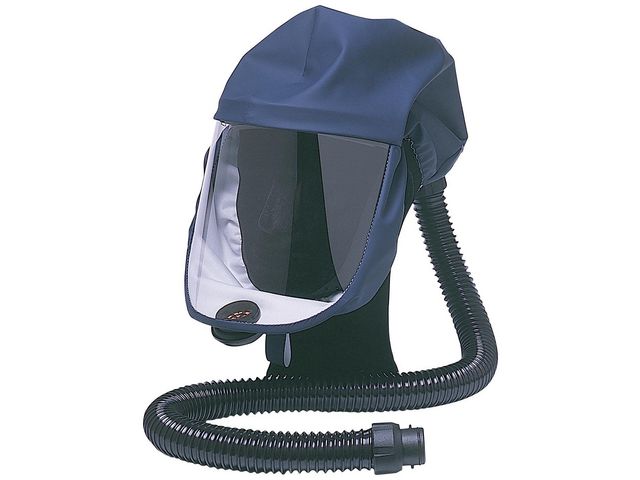 Ultralätt huva av polyester belagd med PVC som täcker ansikte och hår. Huvan används i kombination med Sundströms SR 500, SR 500 EX eller SR 700 och levereras komplett med slang.