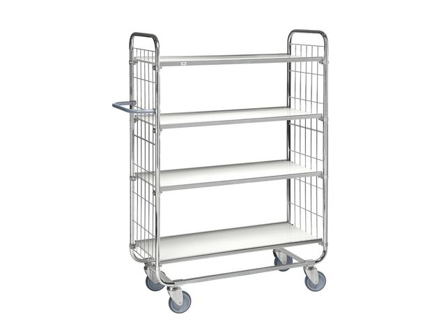 Flexibel hyllvagn med ett brett användningsområde. Hyllorna kan monteras på olika höjder efter eget önskemål. Levereras omonterad. - Längd: 1395 mm - Bredd: 470 mm - Höjd: 1590 mm