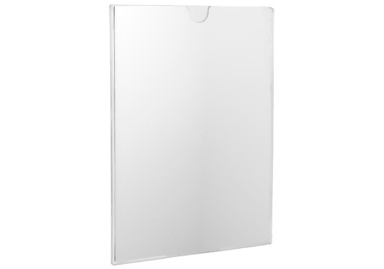 En glasklar akrylficka som kan monteras på vägg med dubbelhäftande tejp. Öppning i ovankant gör det enkelt att byta ut infoblad. - Storlek: A4