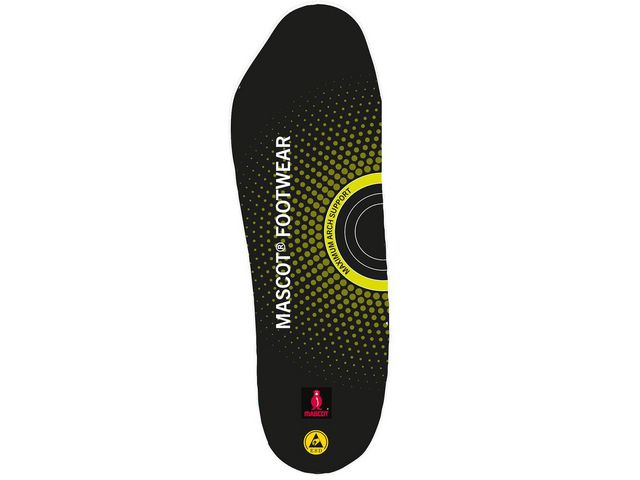 Andasfunktion. TPU hålfotsinlägg. För fötter med högt fotvalv. Sulan kan ändras till bredd 10 genom att skära längs de markerade linjerna på baksidan. ESD-godkända.