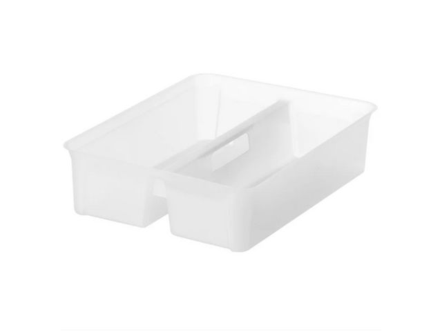 Stor insats med två praktiska fack och ett bärhandtag som gör det enkelt att hålla ordning. Småsaker kan förvaras i insatsen, medan större föremål placeras i botten av förvaringsboxen. Passar perfekt för att organisera skolmaterial eller som en smidig verktygslåda.