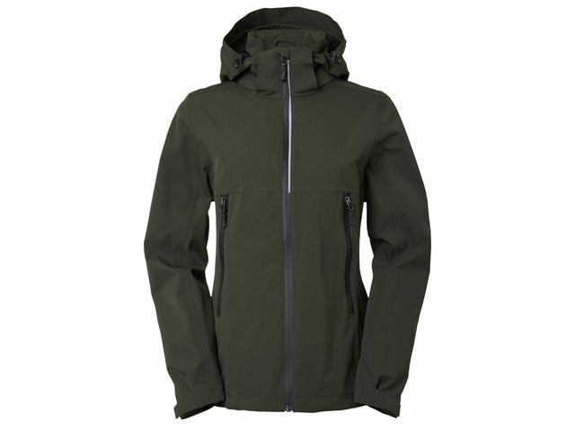 Vind- och vattenavvisande skaljacka i dammodell, utformad med tejpade sömmar för optimalt väderskydd.