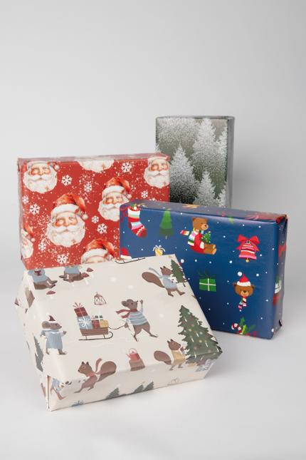 Presentpapper för inslagning av paket. Vikt per rulle 0,5 kg.