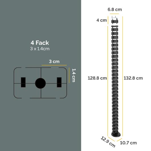 Flexibel kanal anpassar sig till höjdjusterbara skrivbord (upp till 130 cm), rör sig sömlöst när skrivbordshöjden ändras. Fyra segregerade fack håller kablar trasselfritt, samtidigt som det är enkelt att lägga till eller ta ur kabler. Avtagbara sektioner gör att du kan justera höjden för att passa ditt skrivbord perfekt.