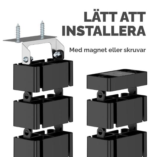 • Lätt att installera och fästa i bordet med antingen magnet eller skruvar