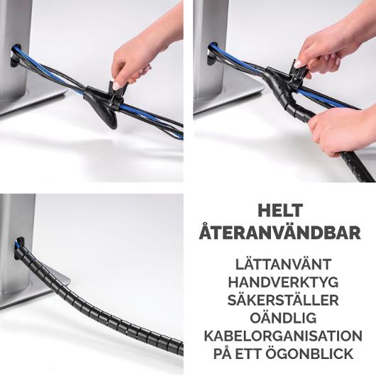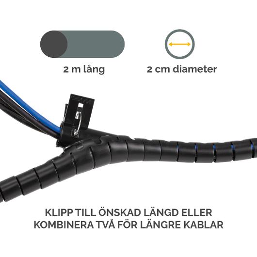 Bunta ihop kablarna så att de skyddas och kommer utom synhåll med det här spiralsladdskabelskyddet. Skydda kablarna samtidigt som de hålls dolda och organiserade med det här spiralslangkabelskyddet . Den generösa designen är töjbar så att det passar flera kablar, vilket gör det perfekt både för datorn på kontoret där många kablar använder samma förlängningssladdar. Till det här spiralslangkabelskyddet medföljer ett verktyg för effektiv montering, så att kablarna prydligt kommer ur vägen. - Skydda och organisera kablar och sladdar - Spiralformad design som töjer sig för att passa flera kablar - Monteringsverktyg medföljer - MAterial: Polypropylene (PP) - Mått: 2 meter - Diameter: 20 mm