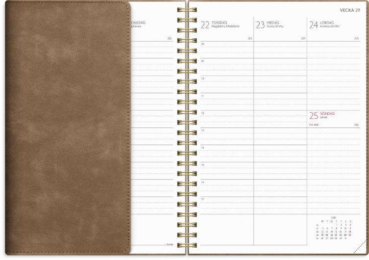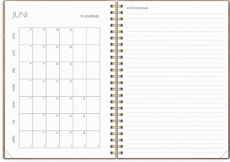 Omslaget Twist rosa är i en sammetsmjuk skinnimitation med en användbar flärp som kan fungera som bokmärke för att enkelt förflytta dig i kalendern.