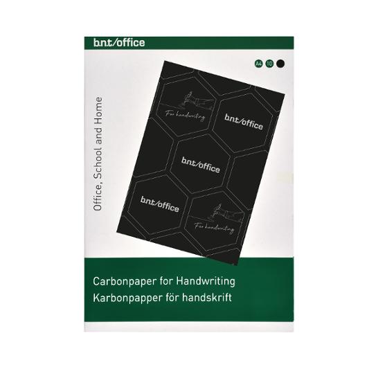 Svart karbonpapper för handskrift. Karbonpapper är ett tunt kalkerpapper som används för att framställa kopior. Det ger en tydlig skrift och har en vaxad baksida.