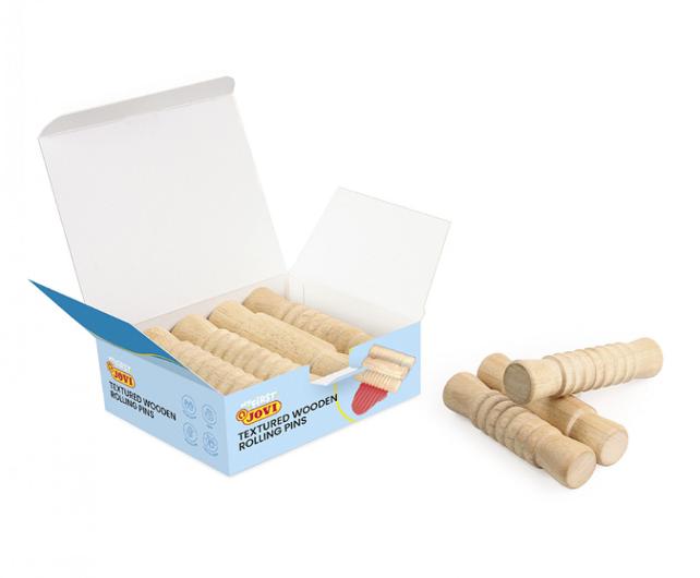 Upptäck träkavlar med tre olika motiv, perfekta för lek med babyplastilin och annan modellera. Kavlarna är designade för att stimulera barnets sinnen och göra det lättare för de minsta att skapa och experimentera med olika texturer.