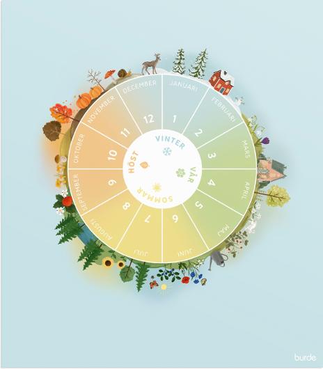 Burdes klassrumskalender är en väggkalender i stort format som är framtagen för att hänga i klassrummet. Varje sida är fylld av färg och säsongsrelaterade illustrationer, för att väcka nyfikenhet och förståelse kring årstiderna. Med kalendern följer en poster med ett årshjul, vars färger återfinns i kalendern. Tanken med detta är att alltid kunna se årshjulet parallellt med månadens uppslag, för att på ett pedagogiskt sätt skapa förståelse för årets gång. Även högtider och roliga temadagar finns illustrerade i kalendern för att skapa ytterligare engagemang och diskussion i klassrummet. Utöver detta medföljer även 2 stora stickersark med händelser att klistra in, vid exempelvis födelsedagar, utflykter eller liknande.