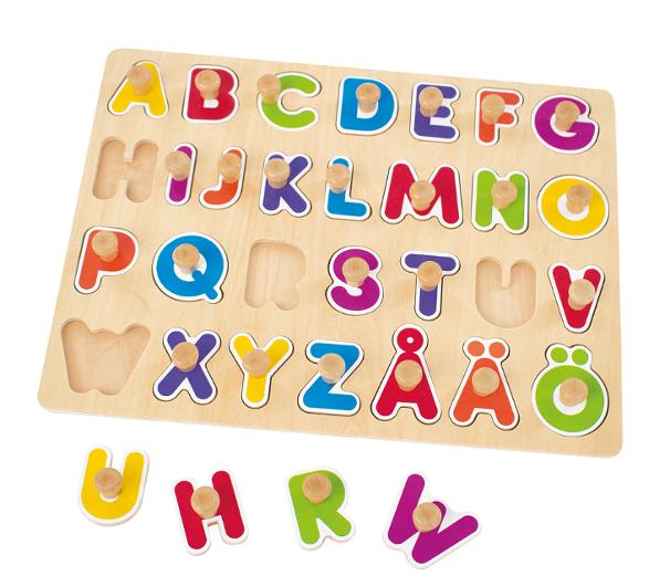 Ett färgglatt pussel med bokstäverna A?Ö som gör språkinlärningen rolig och engagerande. Perfekt för att hjälpa barn att känna igen bokstäver och utveckla språklig medvetenhet. De robusta bitarna är enkla att greppa och placera, vilket gör aktiviteten idealisk för små händer.