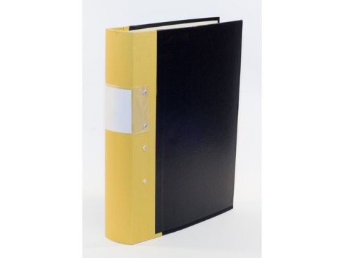 Kontorspärm av bra kvalitet med 40mm trärygg Gaffelpärm med svarta pärmsidor med kantförstärkning och raka hörn. Tygklädd trärygg och etiketthållare.