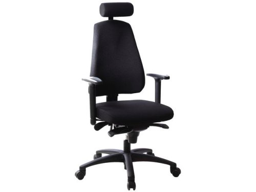 En bra och ergonomisk kontorsstol är viktigt för dig när du arbetar ? hemma eller på kontoret. Med en riktig kontorsstol med optimal sittkomfort säkrar du att få en behaglig arbetsdag. Du bör alltid välja en kontorsstol som är anpassad till din höjd och kroppsform samt en ergonomisk stol med höjd,- sätes,- och ryggjusteringsmöjligheter. Svensktillverkad kontorsstol med högsta ergonomi och kvalitet. Multisynkrongunga som ger ett flexibelt sittande. Vikt och sitsdjupsreglering är standard. Sitsens framkant har en ergonomisk, lätt framåtlutande konstruktion för att underlätta blodcirkulationen i benen när du sitter. Tyg av flamsäkert och slitstarkt kamgarn i 100% ull. Armstöden (tillbehör, art 871232) är justerbara i höjdled och vinklingsbara i sidled. - Luftreglerat svankstöd - Nackstöd finns som tillbehör (art 871234) - Rygghöjd: 52 cm - Ryggbredd: 44 cm - Steglös justerbar sitshöjd: 42-54 cm - Sitsbredd: 47 cm - Sitsdjup: 45 cm - Levereras med 5 hjul för hårda golv - Leveranstid: 12 dagar - Ej returrätt - Färg: Svart