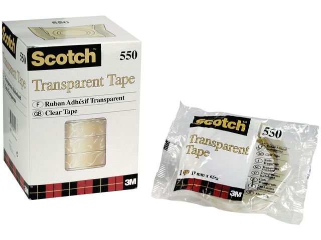 Scotch® genomskinliga tejp 550 har ett starkt och hållbart klister och det är en kontorstejp som är slitstark och fukttålig.