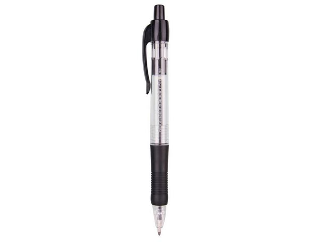 Kulspetspenna med tryckmekanism och ergonomsikt grepp. Bläckindikator.