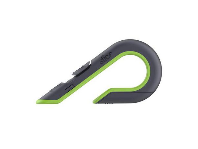 SLICE auto-infällbar lådkniv ger maximal säkerhet tack vare ett ergonomiskt, skyddande J-krokhandtag och unika säkerhetsblad. Lämplig för många material, inklusive enkel- och dubbelväggig wellpapp.